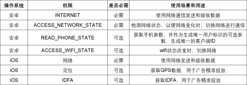 尊龙凯时|品友SDK调用的权限和使用场景、用途说明如下: